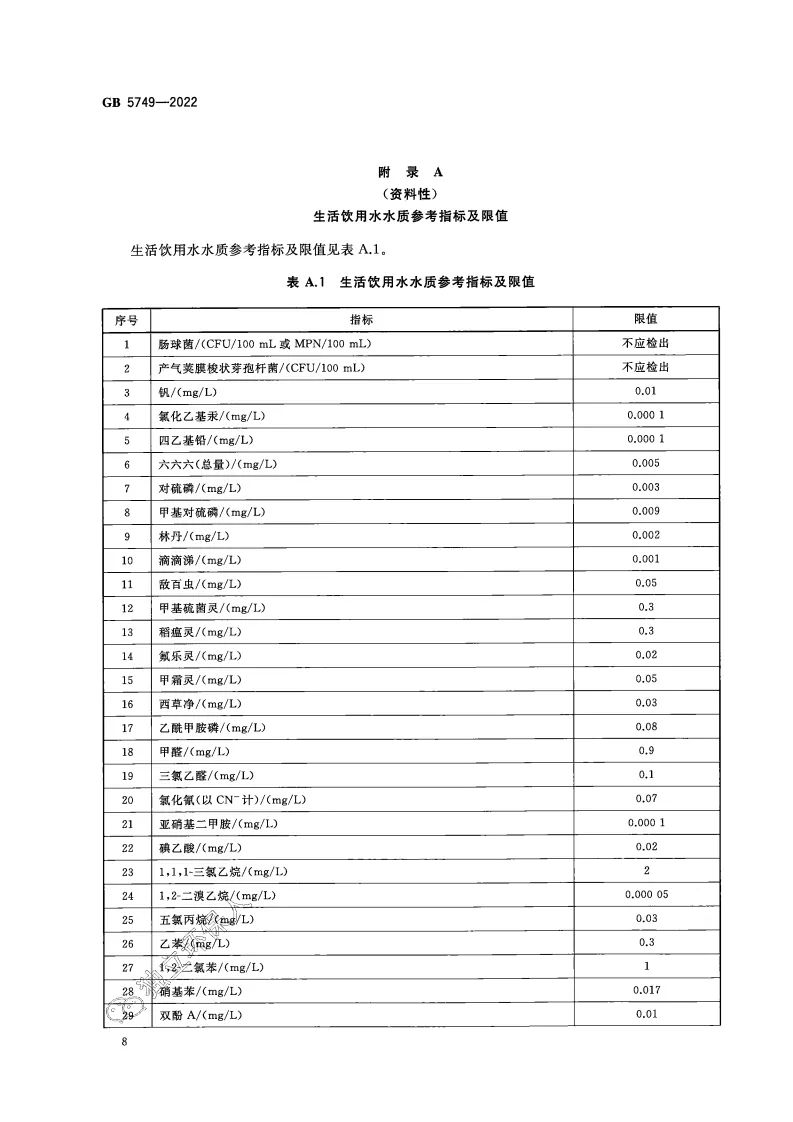 正式稿 |《生活飲用水衛(wèi)生標準》GB 5749-2022發(fā)布!